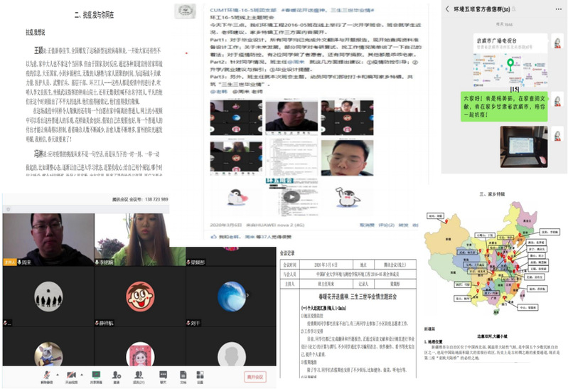 疫情期间,环测学院紧紧围绕党中央决策部署,认真学习贯彻落实习近平总书记重要讲话精神,带领全院教职工积极投身疫情防控阻击战。在学院党组的领导下,班主任们主动作为、发挥优势,助力疫情防控工作。环境工程16-5班班主任周来老师认真贯彻学校学院决策部署,及时开展摸排信息、统计上报工作,针对性地解决学生学业、就业、资助等方面的实际问题,将温情落实在了对学生点点滴滴的行动中。