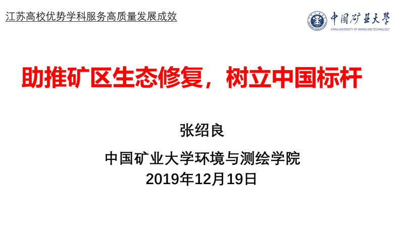 12月19日,江苏省教育厅召开新闻发布会,推介“高校优势学科服务江苏高质量发展”。51视频测绘科学与技术学科入选典型案例,特邀参会汇报学科建设成果。执行院长张绍良教授出席会议,并做了 “助推矿区生态修复,树立中国标杆”的报告。