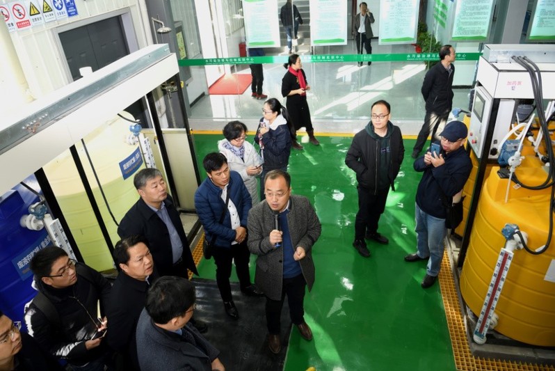 仪式上,曹德欣副校长代表学校对实训中心的建成表示热烈的祝贺,向为实训中心建设付出辛勤劳动的工作人员和承建单位表示衷心的感谢,向来访的兄弟高校同仁表示热烈的欢迎。他对建设实训中心,通过实训的方法将实验室废液进行无害化、减量化处理,在培养学生实训能力的同时破解实验室废液处置难题,消除长时间存放实验室废液所带来的安全隐患,节省委托具有资质企业处置废液的费用,较好的实现社会效益和经济效益的做法表示了肯定,并希望工作人员做好实训中心运行维护,为培养人才、保护环境、建设美丽中国而不懈奋斗!环境实验室副主任白向玉老师介绍了实训中心建设情况。曹校长和学校相关单位负责人共同为实训中心揭牌。与会人员围绕实训中心建设运行和实验室安全管理进行了座谈交流。