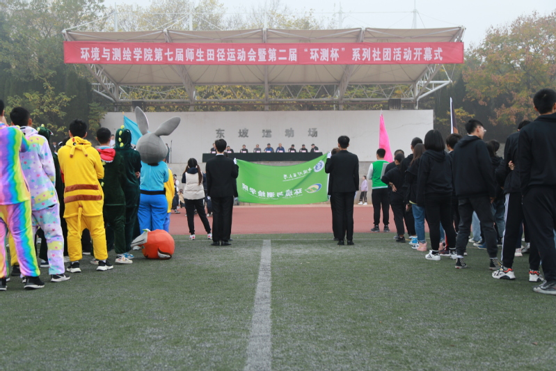 第七届师生田径运动会暨第二届“环测杯”系列社团活动开幕式于东坡运动场隆重举行。51视频党委书记李长贵、科研副院长郑南山、行政副院长郭东、教学副院长周来、国家“万人计划”教学名师高井祥、院关工委常务副主任邱慎耕、全体教职工、本科生、研究生均参加了此次活动。党委副书记王守刚担任主持人。