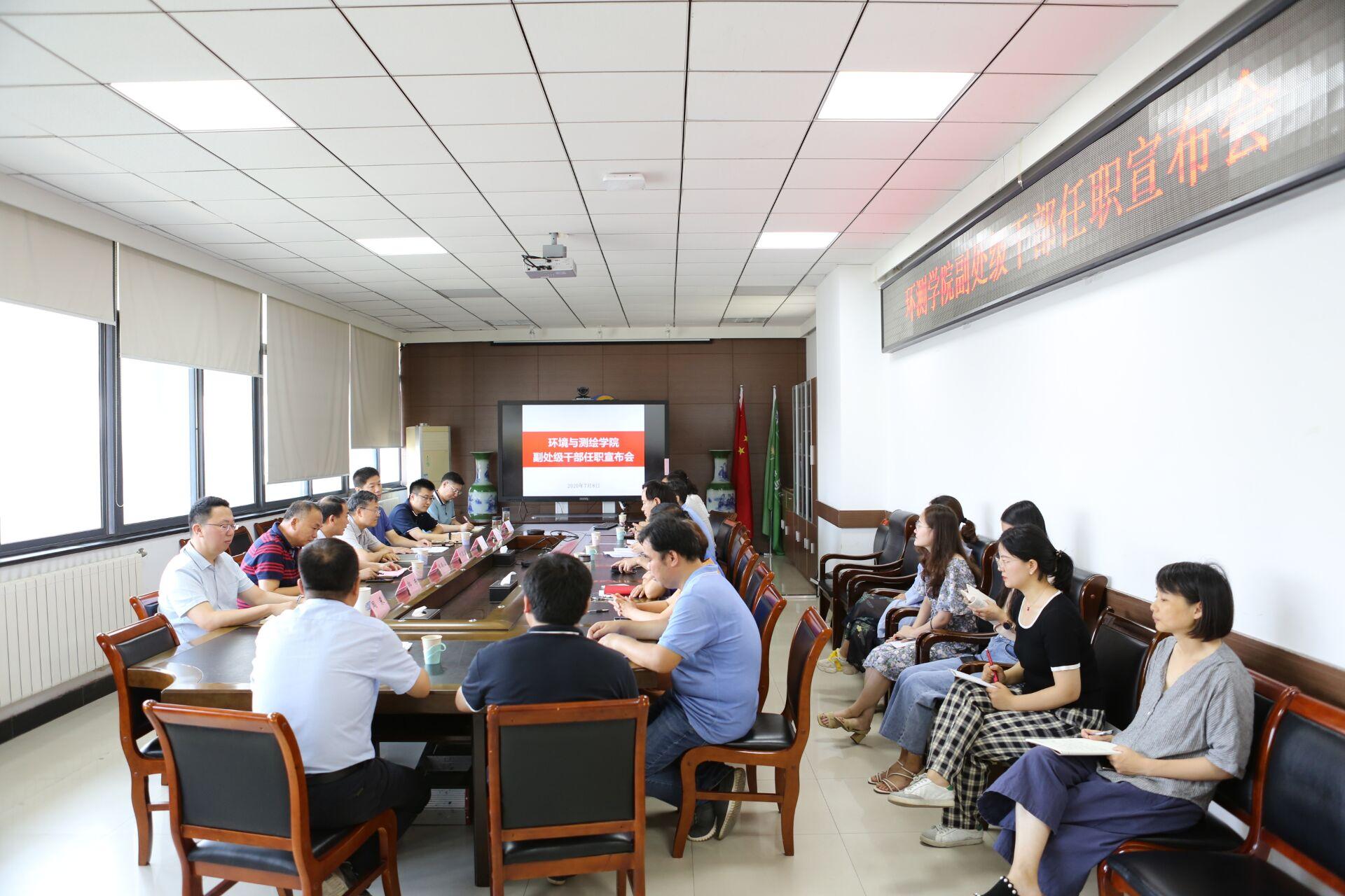 7月8日上午,学院在A506会议室召开副处级干部任职宣布会。副校长卞正富,院党委书记王守刚,执行院长郑南山,副院长郭东、周来,新提任副处级干部韩福顺、王潜心参加会议,学院工会、各系所、实验室、机关科室等职能部门教师共计30余人参加了会议。执行院长郑南山主持会议。