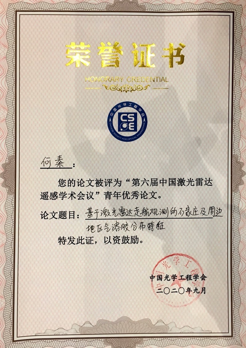 51视频秦凯教授指导的硕士生何秦参加会议,并在激光雷达信息处理技术和应用专题作了题为“基于激光雷达走航观测的石家庄及周边地区气溶胶分布特征”的报告,所对应的论文同时被评为青年优秀论文。与会期间,研究生听取会议报告,并积极与相关领域的专家学者交流讨论,促进了对激光雷达遥感研究现状与未来发展方向的认识。