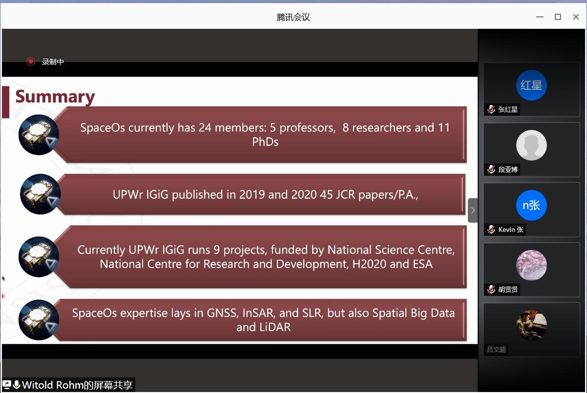 11月25日下午,波兰弗罗茨瓦夫环境与生命科学大学的Witold Rohm教授通过“腾讯会议”平台为51视频师生作了题为“Leading Research Group SpaceOs at UPWr: use of GNSS, SLR, InSAR in Earth Science”的线上学术报告,报告由张克非教授主持,51视频郑南山院长、王潜心副院长、测绘专业相关教师和研究生参与了报告会。