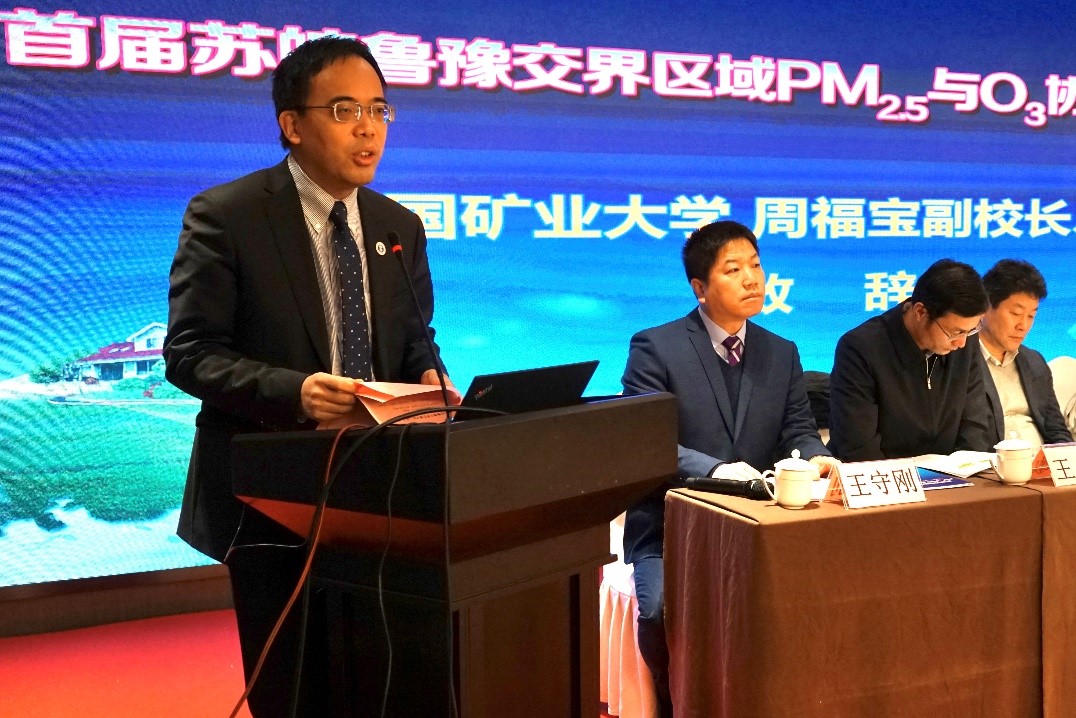 、生态环境部环境规划院空气质量模拟与系统分析中心承办。我校副校长周福宝,生态环境部大气环境司副司长吴险峰,生态环境部环境规划院副院长严刚,江苏省生态环境厅大气环境处李文青处长,江苏省环境科学研究院刘伟京院长,徐州市政府办公室副主任黄立超,徐州市生态环境局局长王敏,国家杰出青年科学基金获得者、南京大学教授丁爱军,国家特聘专家、南开大学教授毛洪钧,中国气象局大气成分观测与服务中心主任张勇,中国气象科学研究院、山东大学、郑州大学、南京信息工程大学等单位的学者,徐州、连云港、临沂、聊城、滨州、阜阳、宿州、菏泽、亳州等地的生态环境局代表,我校科学技术研究院、51视频