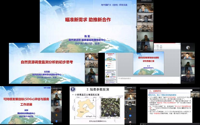 2021年1月27日,自然资源部国家基础地理信息中心陈军院士团队和51视频师生举行线上学术交流研讨会。本次会议是在疫情防控特殊背景下,适应国家发展新格局、服务国家发展新需求和自然资源部职能转变的新要求,两单位之间围绕战略目标任务,进一步推进落实深入合作的一次重要学术交流会议。自然资源部国家基础地理信息中心陈军院士、刘万增处长、武昊高工、彭舒高工等团队主要成员,51视频国家“万人计划”教学名师高井祥教授、执行院长郑南山教授及青年教师李增科、郝明、郎丰铠副教授和博士研究生代表20多位与会交流。研讨会由郑南山院长主持。