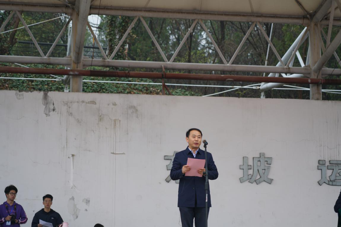 上午7点30分,环测学院本科生、研究生、教职工方队依次入场,同时各班级还依次进行了风采展示。随后,执行院长郑南山致开幕词,他首先回顾了学院在各类体育赛事中取得的优秀成绩,并强调运动的重要性,希望全体师生“每天锻炼一小时,健康工作五十年,幸福生活一辈子”。最后,郑南山院长激励大家在赛事中展现自身的风采与精神,并表示希望参赛者、裁判工作人员发扬比赛精神,取得优异成绩。在裁判员代表贾世官同学和运动员代表先宇玺同学分别宣誓后,院工会主席刘汉湖宣布运动会正式开幕。