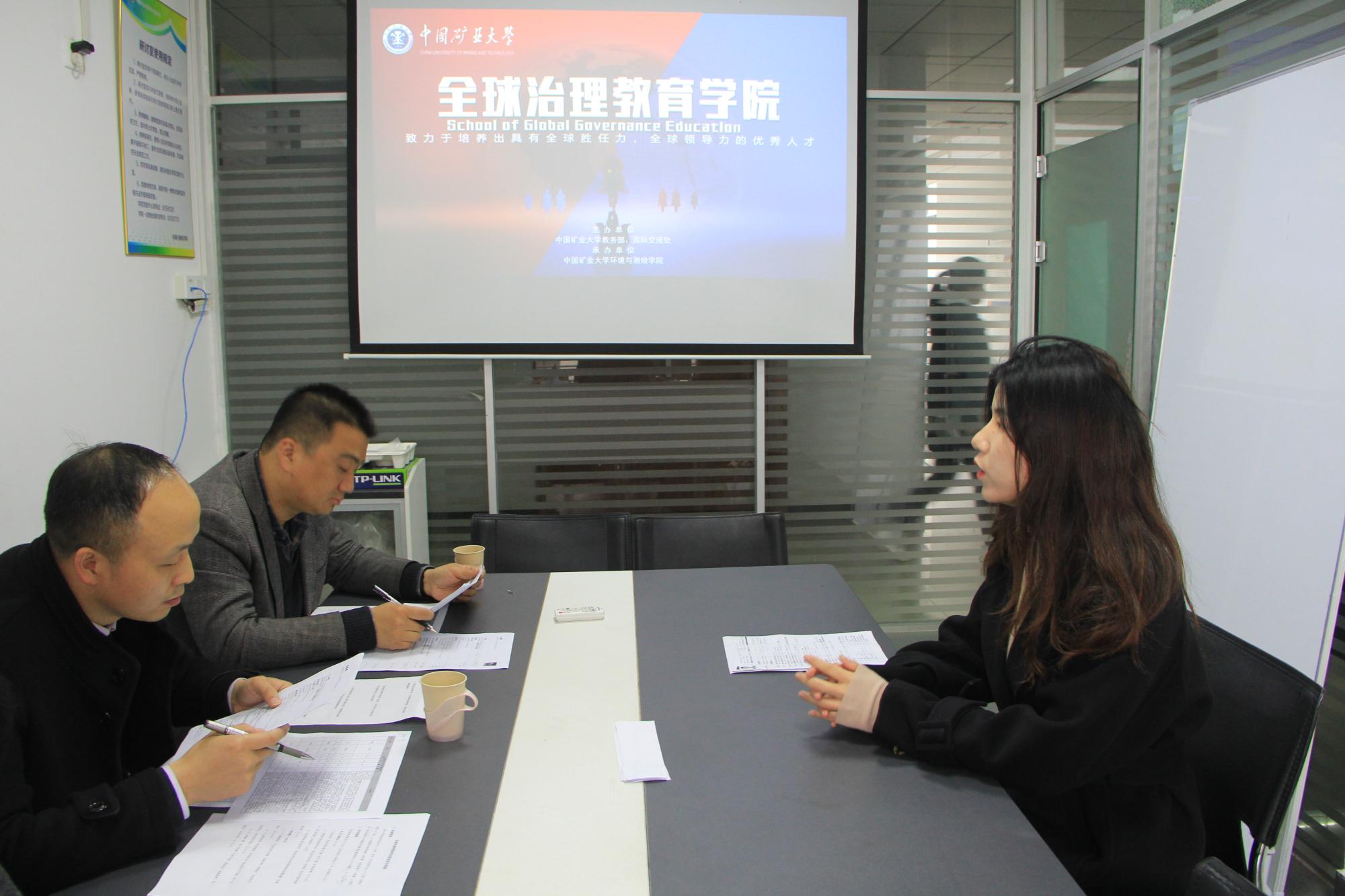 环测学院党委副书记韩福顺等领导和教师负责此次面试。在面试中,自身对全球治理的了解、个人优势、职业规划等方面全面考查了面试者的综合素质。