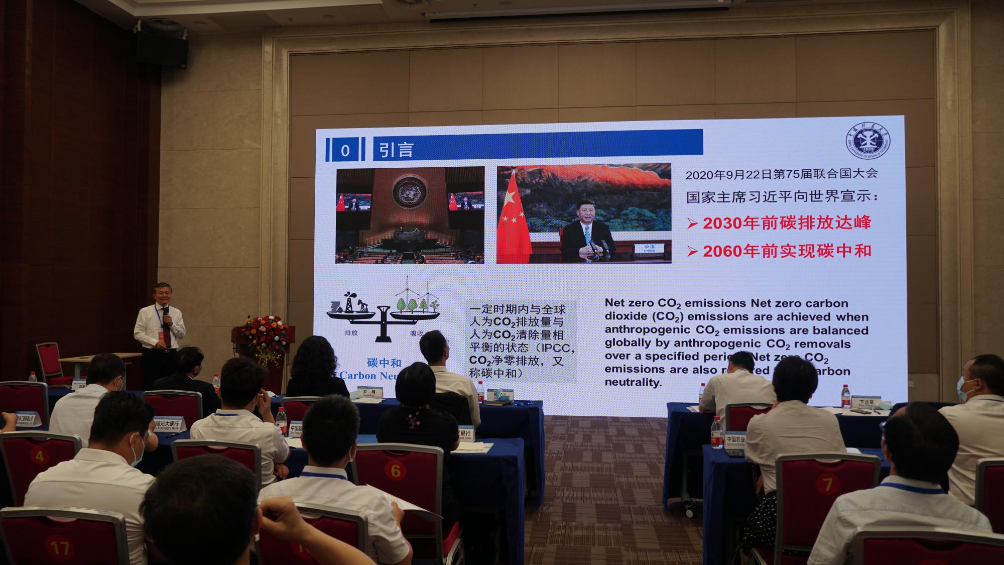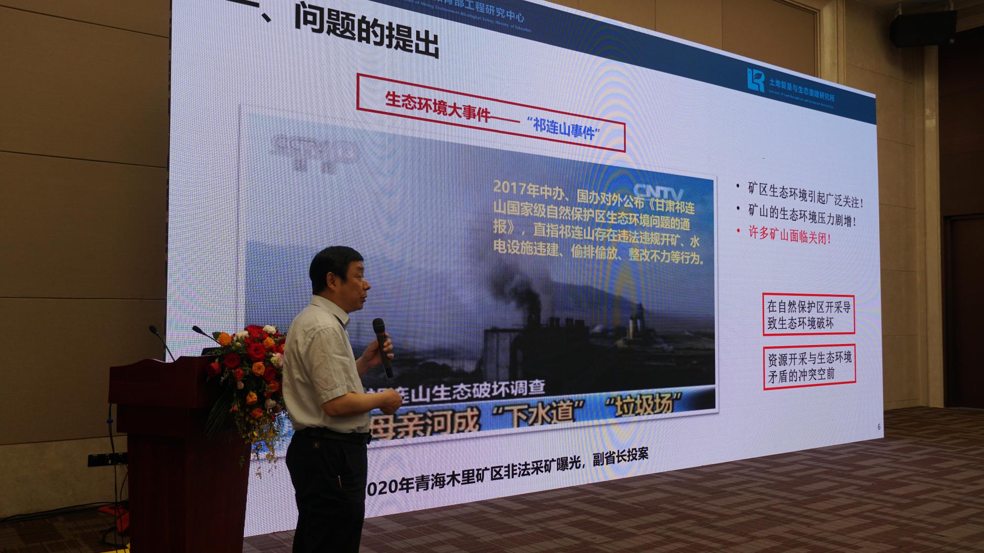研讨会上,卞正富副校长作了题为“碳中和目标背景下矿山生态修复的路径选择”的主旨报告,他指出:碳中和加速了后采矿时代到来,而生态修复则是后采矿时代的重要任务;与碳中和相比,后采矿时代更具长期性、艰巨性、复杂性。随后,引申出碳中和与生态修复导致的共同结果是改变生产生活方式与发展模式,总结了矿山生态修复对碳中和愿景的实现的积极作用,并从标准更新、管理机制、技术体系三个层面提出碳中和背景下矿山生态修复的路径选择。