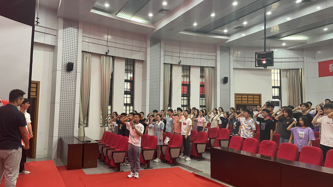 活动开始之后,在本科测绘党支部书记王泽鹏同志的带领下,全体党员起立,右手握拳,面向党旗,庄重宣誓。每一个党员都声音响亮,带着坚定的决心,面对党旗接受这庄严而肃穆的洗礼。新发展党员同志通过庄重严肃的入党宣誓仪式,更加坚定自己为党的事业承担政治责任的决心,毕业班党员同志也通过重温入党誓词,来重温入党初心,促使毕业生党员在毕业之后仍要牢记誓言、恪守承诺。