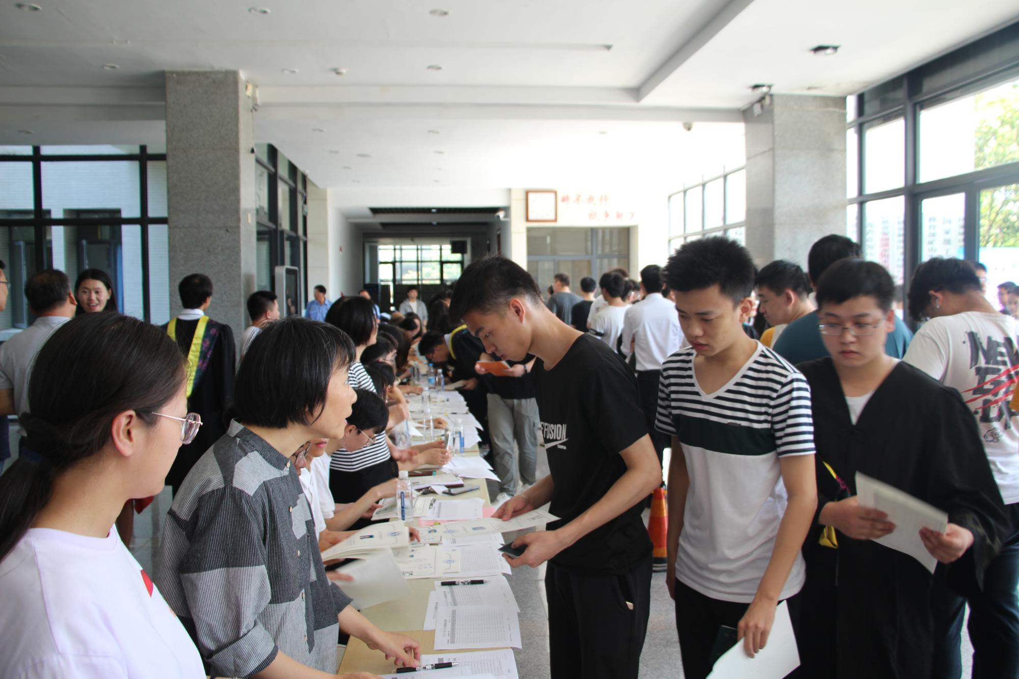 6月19日,环测学院在学院楼一楼大厅组织进行2021届全体毕业生离校手续办理工作。学院党政领导统筹协调,学院党政办公室、教学办公室、学生工作办公室等全体教职工联合为学院2021届全体毕业生办理离校手续,切实保障毕业生离校工作的有序开展。