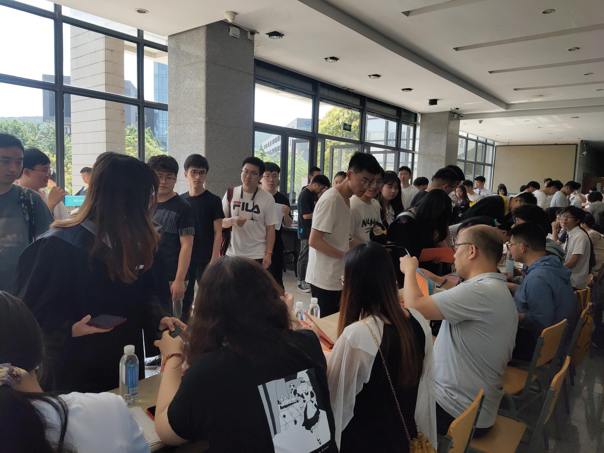 上午10点,各项工作有条不紊地开展,学院教职工于办公桌上摆放指引牌和离校手续材料,到场毕业生自觉有序排队,依次办理各项手续。从信息查询、学生证注销,到户口迁移证、毕业证、学位证的发放等各项手续,现场工作人员耐心帮助毕业生解决问题并叮嘱注意事项。期间,院党委副书记韩福顺前来了解工作进展情况,对离校手续办理工作进行指导。学院在环测楼前设置了合影留念墙,供毕业学子合影留念,让环测学子在离校之际充分感受到学院领导老师的关心与照顾。本次联合办理离校手续工作极大地方便了毕业生,受到毕业生的广泛称赞。