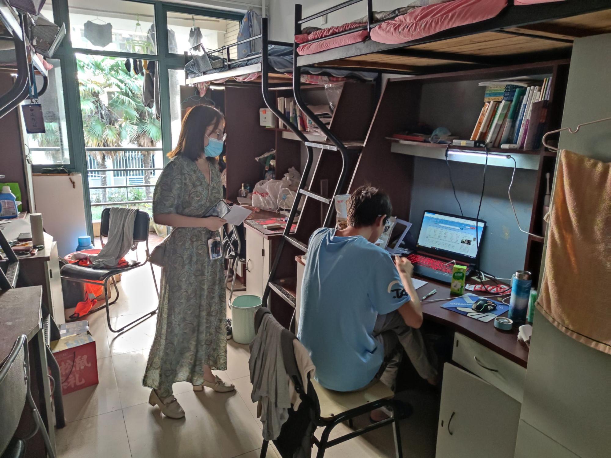 四是坚持关心关爱相伴,贴心做好服务保障。9月28日-30日,院领导老师开展了走访学生宿舍与宿舍安全卫生检查工作。本次走访宿舍主要针对宿舍卫生、用电安全等方面进行检查,同时,各年级专职辅导员对同学进行了关心慰问,并指出假期期间如有任何生活困难可随时向辅导员反映,学院将全力保障国庆期间同学们的正常学习生活,让同学们感受到环测大家庭的温暖。