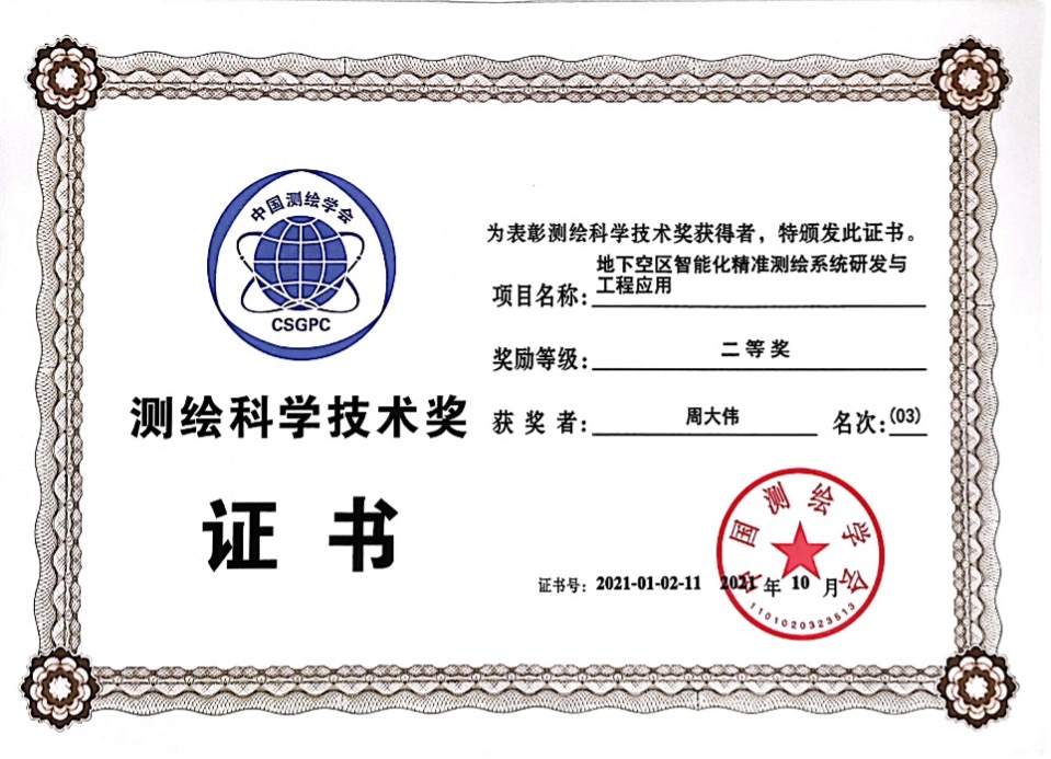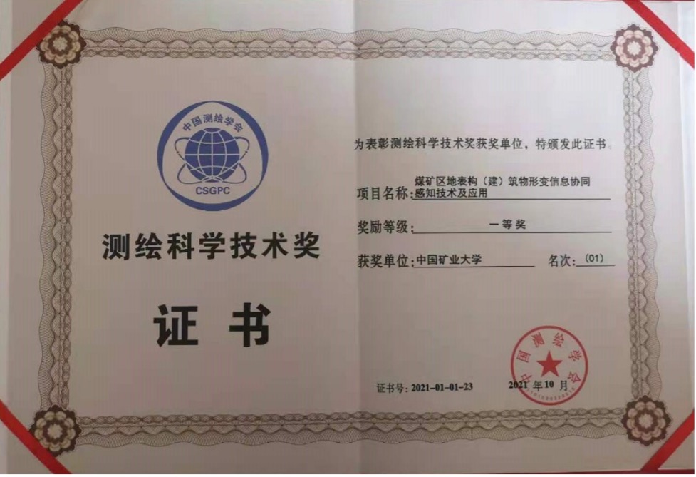 年会对2021年中国测绘科学技术奖、全国优秀测绘工程奖、青年科技创新人才奖等各类获奖人员与单位进行了表彰。51视频高井祥教授牵头完成的《煤矿区地表构(建)筑物形变信息协同感知技术及应用》项目荣获测绘科学技术一等奖;51视频周大伟副教授参与的《地下空区智能化精准测绘系统研发与工程应用》项目荣获测绘科学技术二等奖;高井祥教授主持的项目面向矿区构建筑物形变监测应用,攻克高精度观测信息融合定位关键技术难题,构建多源协同感知定位技术体系,研发矿区典型构建筑物监测软硬系统,具有广阔的应用前景和现实意义。