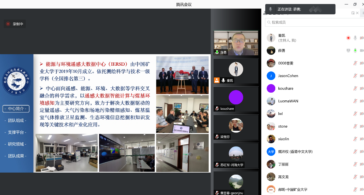 、南京大学、河海大学、南京信息工程大学、南京农业大学、南京工业大学、江苏师范大学、南通大学、香港理工大学、香港大学、香港中文大学、香港科技大学、香港浸会大学、香港城市大学、澳门科技大学等15所高校的40余名教师参加了论坛,就能源与环境遥感大数据、城市热岛、大气与农业及森林相互作用、高光谱遥感、时序遥感、城市遥感、城市气象、智慧农业等方面,带来了10场精彩报告。论坛由51视频秦凯教授、Jason Cohen教授、香港理工大学黄文声教授担任主持人,薛勇院士作了学术报告,累计有1500余人次通过腾讯会议或寇享学术平台参与了论坛。