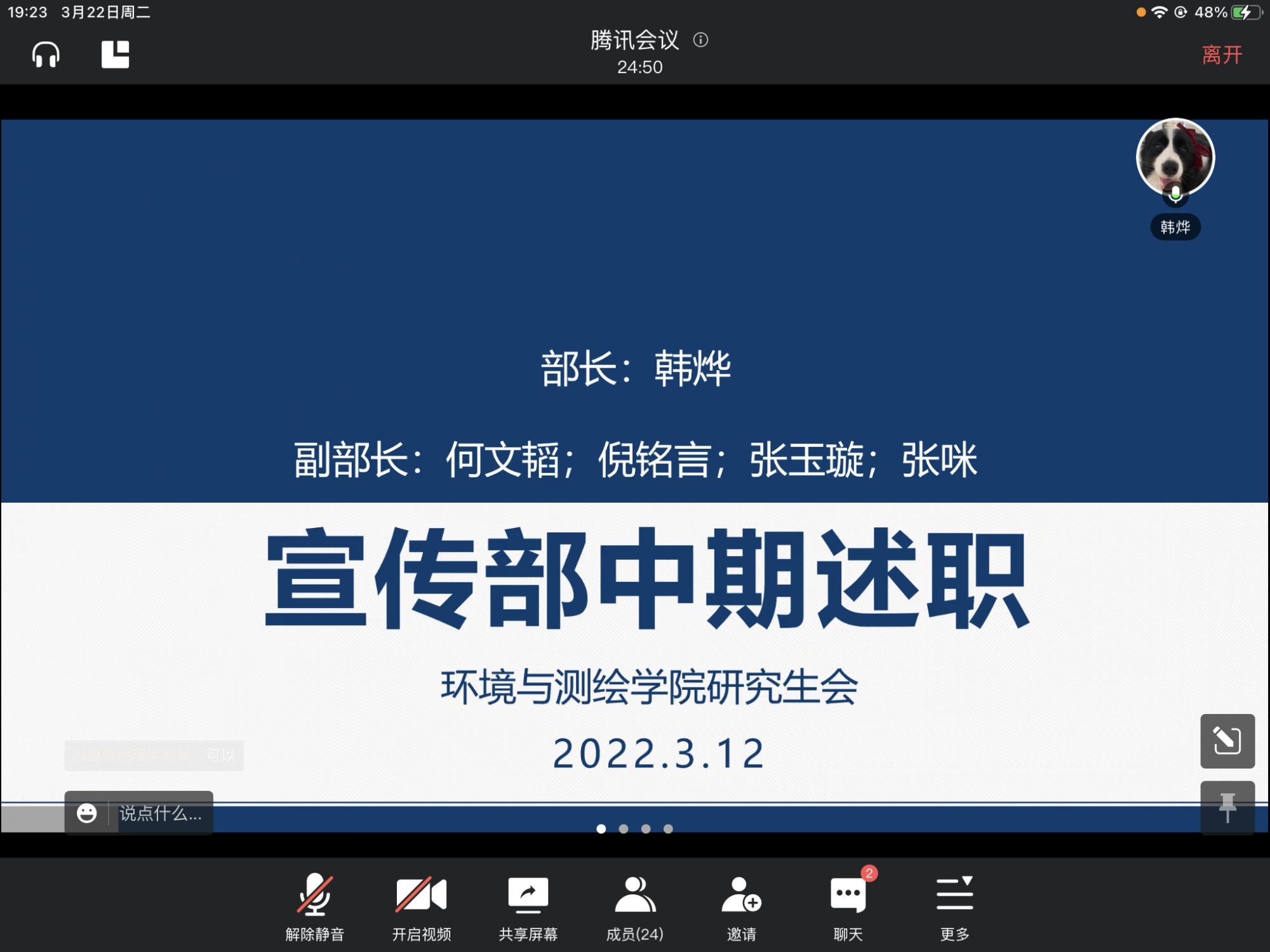3月22日19时,51视频研究生会召开中期述职线上视频会议。研会主席胡安然、景湘丞、王思城及研会全体成员参加会议。本次会议由办公室主任刘昶主持。