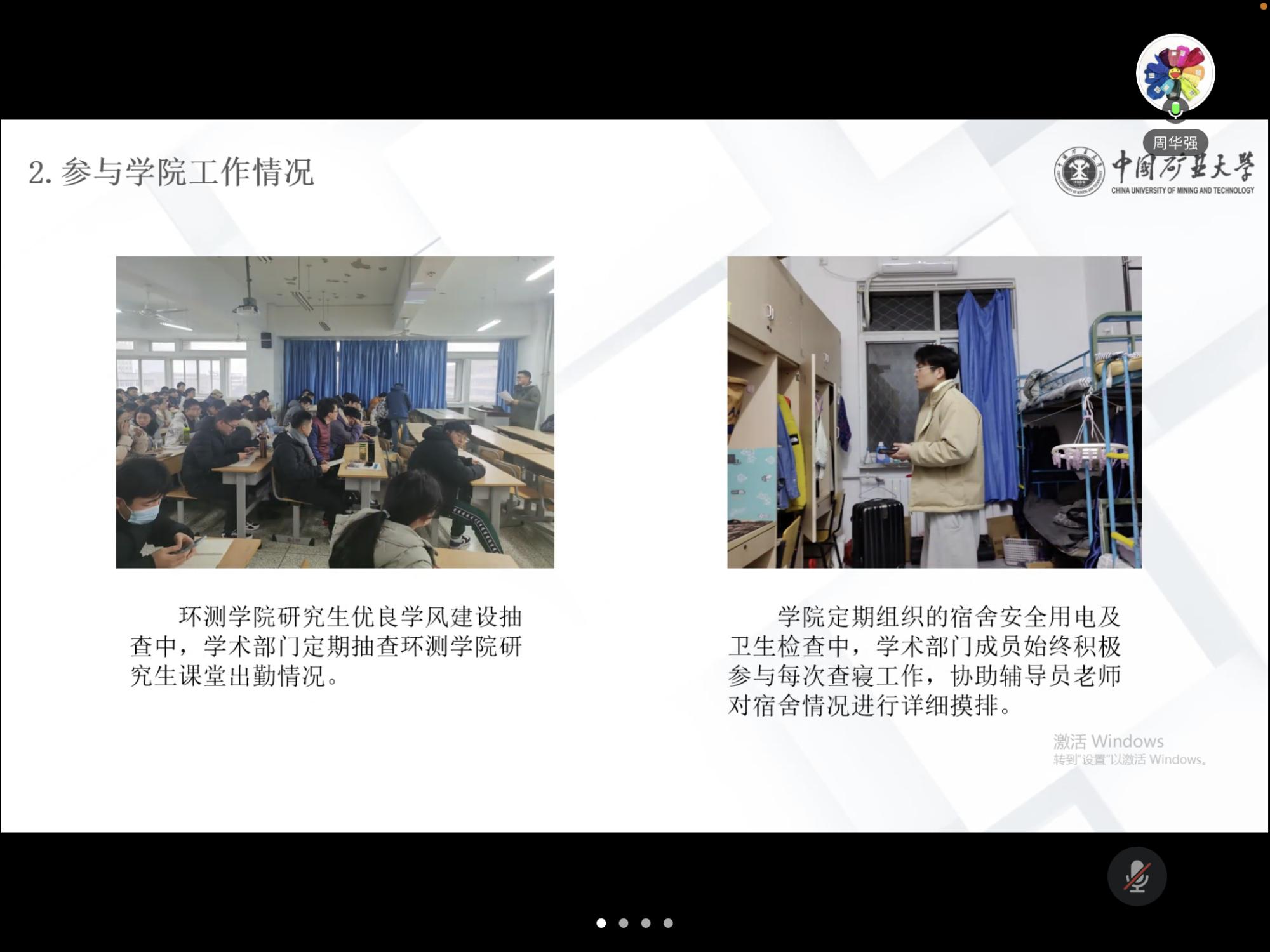 随后,文体部部长丁立鑫从主办和协办活动入手,分析活动中存在的不足,同时对大家积极参加学院活动表示感谢,并提出将在接下来举办的活动中提出相应的解决方案。学术部部长周华强从三个方面进行汇报部门工作,他表示接下来的工作重点将放到学校双碳系列活动和“妙笔绘安全”实验室安全绘画大赛。本学期,在加强和宣传部等部门的联系与合作的同时,学术部积极创新运作模式,鼓励更多的同学加入到学术活动中。权益部部长卢汐以活动为脉络,叙述了维权与活动参与这两项立足实践的主要任务,着重介绍了创设权益信箱以来为同学们解决的生活问题。宣传部部长韩烨依次展示“破浪杯”、双选会等专题活动和测绘学科相关公众号集合等原创推文成果,他表示,宣传部经过校团委新闻培训后,将在未来向大家推送更有温度、更具思考和正能量的文章。