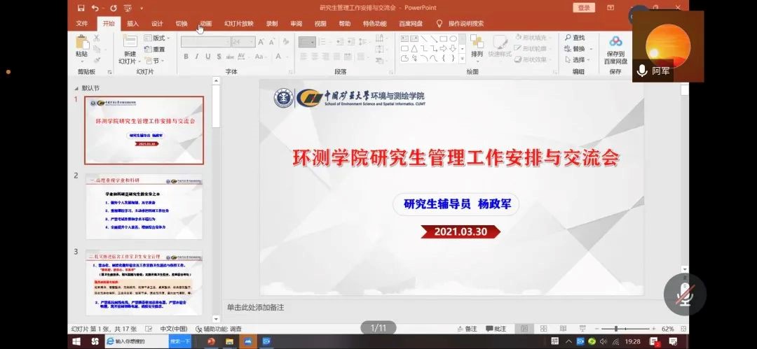 3月30日晚7点,51视频开展了研究生管理工作安排与交流会,院党委副书记韩福顺、研究生辅导员杨政军出席了本次交流会。研究生各班班委,党支部书记,研究生会全体人员,党站全体人员,兰三党工委学生工作组全体人员及各宿舍楼疫情防控党员骨干联络员参加了此次会议。