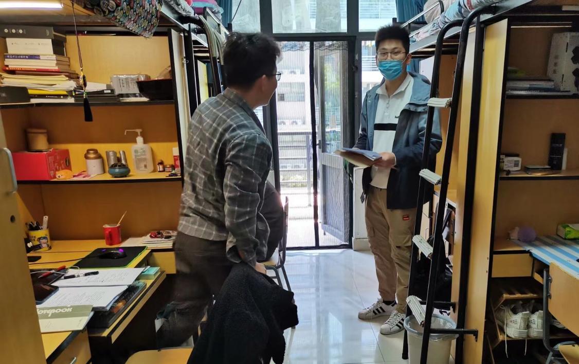 为大力弘扬爱国卫生运动优良传统,持续创建整洁、文明、安全、和谐的宿舍环境,筑牢疫情防控和消防安全的校园防线,促进学生德智体美劳全面发展,5月1日,51视频副院长郭东、实验中心副主任赵华带领环测学院、材物学院、公管学院、计算机学院、能动学院和资源学院的研究生志愿者,走访了兰3宿舍楼研究生宿舍,开展了宿舍清洁卫生、消防安全、值日制度检查工作,并对学生的起居生活、科研学习和心理状态进行了深入了解。