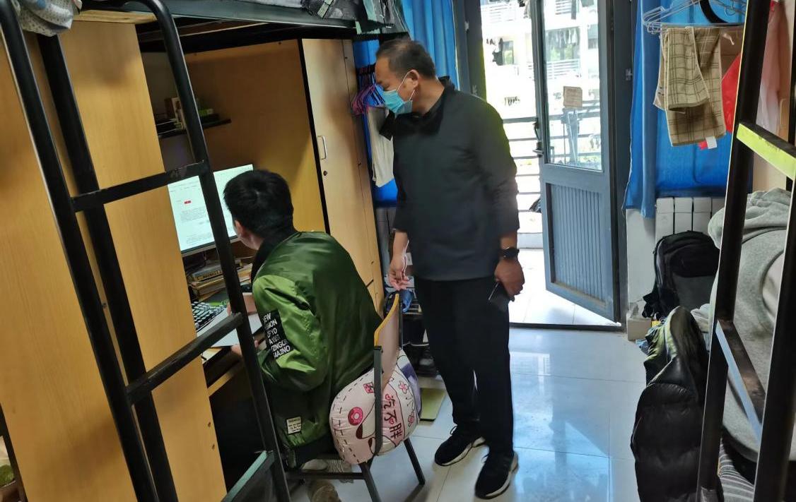 检查期间,郭东副院长提醒同学们在学习的同时不要忘记要健康作息、积极锻炼,并告诫同学们要严格遵照消防安全相关规定,建立健全常态化值日制度,杜绝宿舍内抽烟现象。赵华副主任表扬了在宿舍认真学习的同学,并提醒他们卫生工作要细心细致,排除死角,做好公共区域的值日管理,及时通风换气。