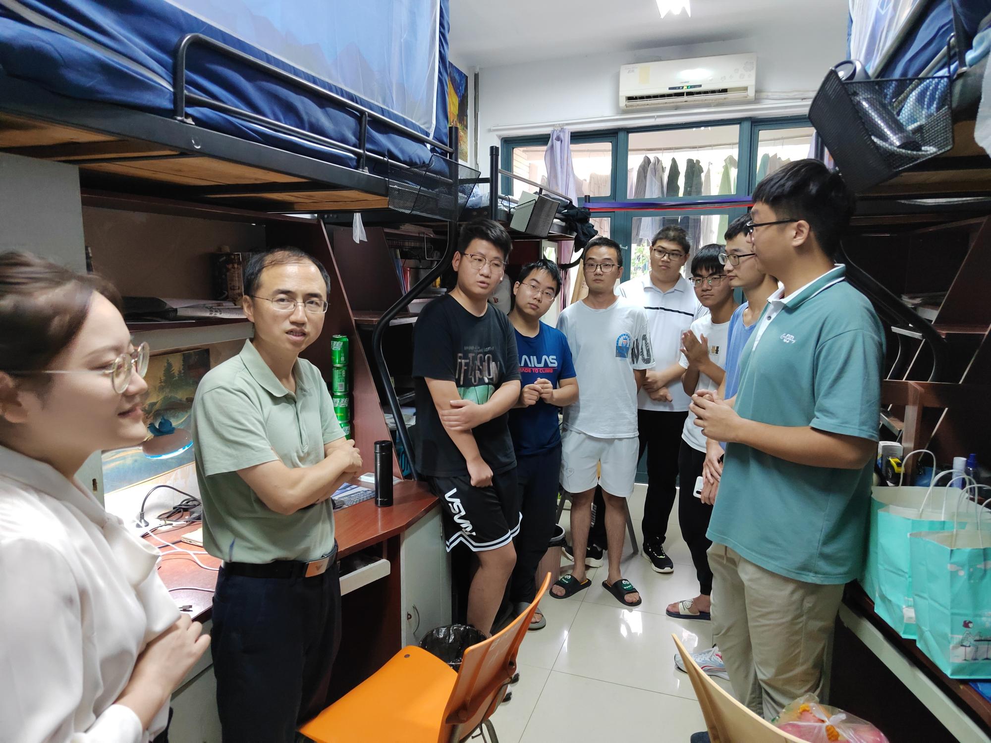 祁慧勇处长深入学生宿舍,与学生亲切交谈,详细询问学生们在校学习、生活情况。同学们也讲述自己新学年以来的感受以及近期学习生活的困惑。祁慧勇处长鼓励同学们不仅要掌握专业知识,还要通过阅读经典书籍来陶冶情操,丰富学识,提升综合素养。厉伟副处长向同学们讲述了环境专业发展方向,鼓励同学们在专业领域汲取知识。最后祁慧勇处长勉励大家要克服困难、认真学习,树立远大目标,保持积极向上的人生态度,怀揣勇气与梦想,在新时代的大舞台上绽放绚丽的青春之花。