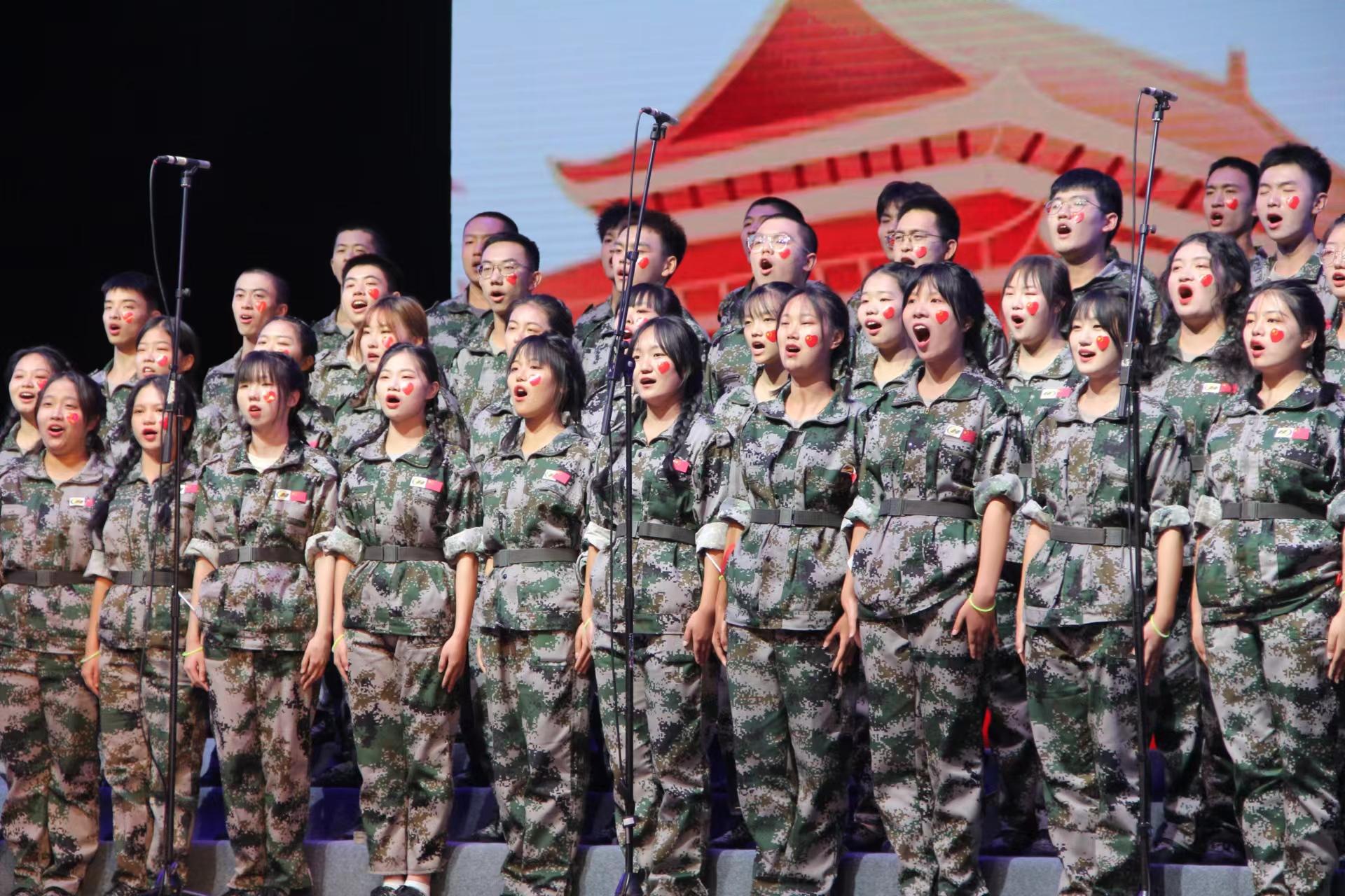 军训健体魄,学子颂党恩。为体现学生军训面貌,锻炼团结协作能力,培养坚持不懈的奋斗精神,我校于9月21日19时举办2022级学生军训合唱比赛。