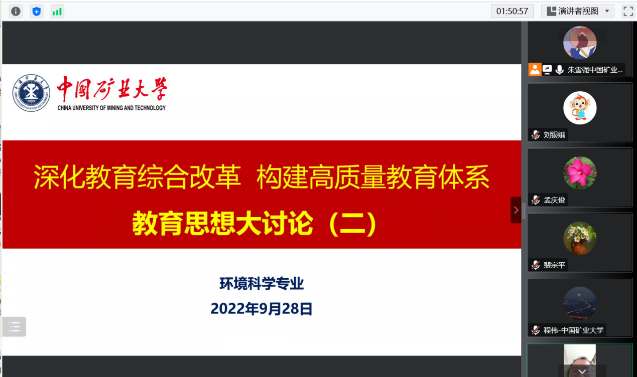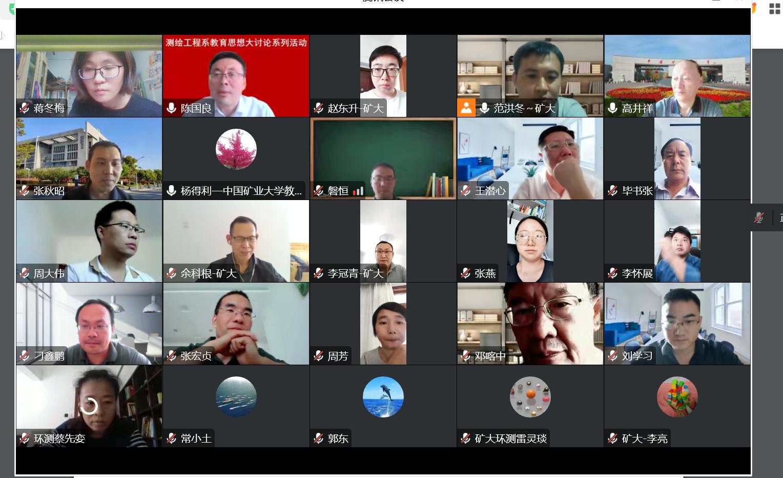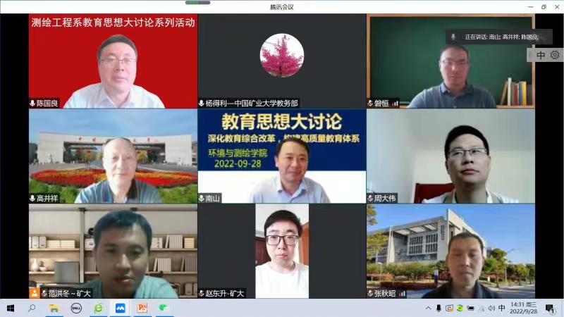 组织召开全院教育思想大讨论交流活动。活动采取线上方式,以支部为单位,分四个组同时进行,学院执行院长郑南山、教学副院长周来、各系(实验室)主任、专业负责人等全体教职员工参加会议。由学校教务部副部长杨得利、矿业工程学院郑西贵教授、人文与艺术学院王青教授、教务部高蕾老师组成的督导专家组到会一起参与了研讨工作。