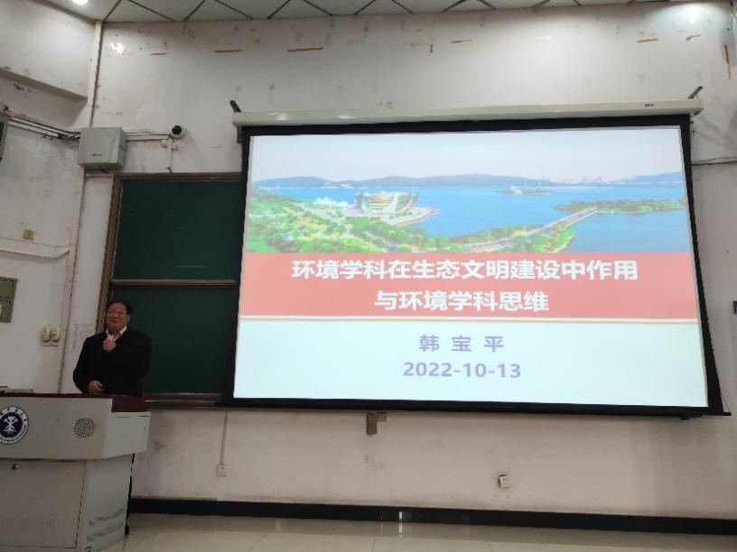 10月13日下午,学院邀请江苏师范大学韩宝平教授来校作了题为“环境学科在生态文明建设中作用与环境学科思维”的学术报告。报告会由环测学院副院长周来主持,环境学科部分教师、研究生新生、本科生新生等参加了报告会。