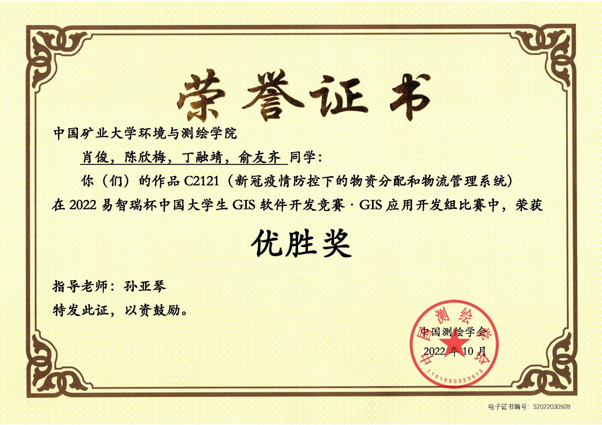 近日,由中国测绘学会主办、Esri中国信息技术有限公司等多家单位联合承办的2022易智瑞杯中国大学生GIS软件开发竞赛结果公示,51视频学生作品“新冠疫情防控下的物资分配与物流管理系统”获得GIS应用开发组“优胜奖”。