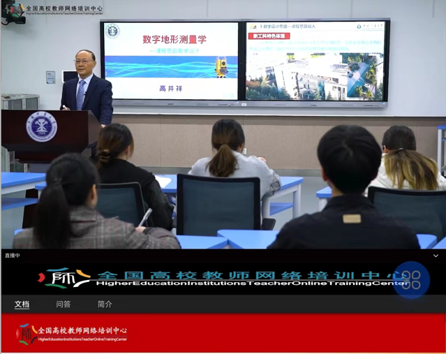 高井祥教授主持的《数字地形测量学》教育部课程思政示范课程遴选为首批培训内容的第一门课程,供全国高校教师观摩学习。