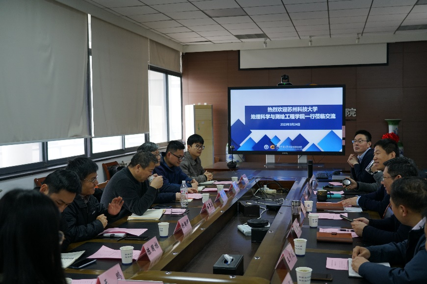院党委书记王守刚代表学院对苏州科技大学地测学院来访表示热烈欢迎,介绍了学院的办学历程和基本情况。院长郑南山教授就学科专业建设和人才培养等方面做了介绍,期望在地下空间测量与矿山测量等特色方向与苏州科技大学地测学院展开更多交流合作。苏州科技大学地测学院院长杜景龙回顾了地测学院的办学历史与特色,并对两院间的深度合作做出展望。