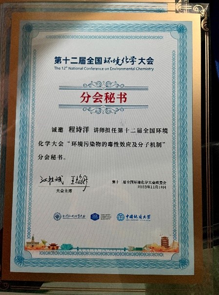 11月17日,季力教授受邀赴武汉参加由中国环境科学学会环境化学分会和江汉大学环境与健康学院共同主办的第三届全国环境化学青年学者论坛,并在环境大数据会场作了邀请报告。11月19日上午,季力在第十二届全国环境化学大会非靶标分析-前沿与应用第四分会场受邀做主旨报告“发展De Novo方法揭示新污染物非共识代谢的毒理学图谱”,汇报了其近期在新污染物阻燃剂、抗生素、精神活性药物等代谢研究中所产阐明的多个新型代谢路径,得到了国内诸多新污染物研究一线科研人员的肯定,提升了我校环境学科在新污染物代谢毒理研究工作中的学科声誉和影响力。环境学科教师程诗洋担任环境污染物的毒性效应及分子机制第47分会场秘书,为环境化学大会的会务组织工作做出了贡献。