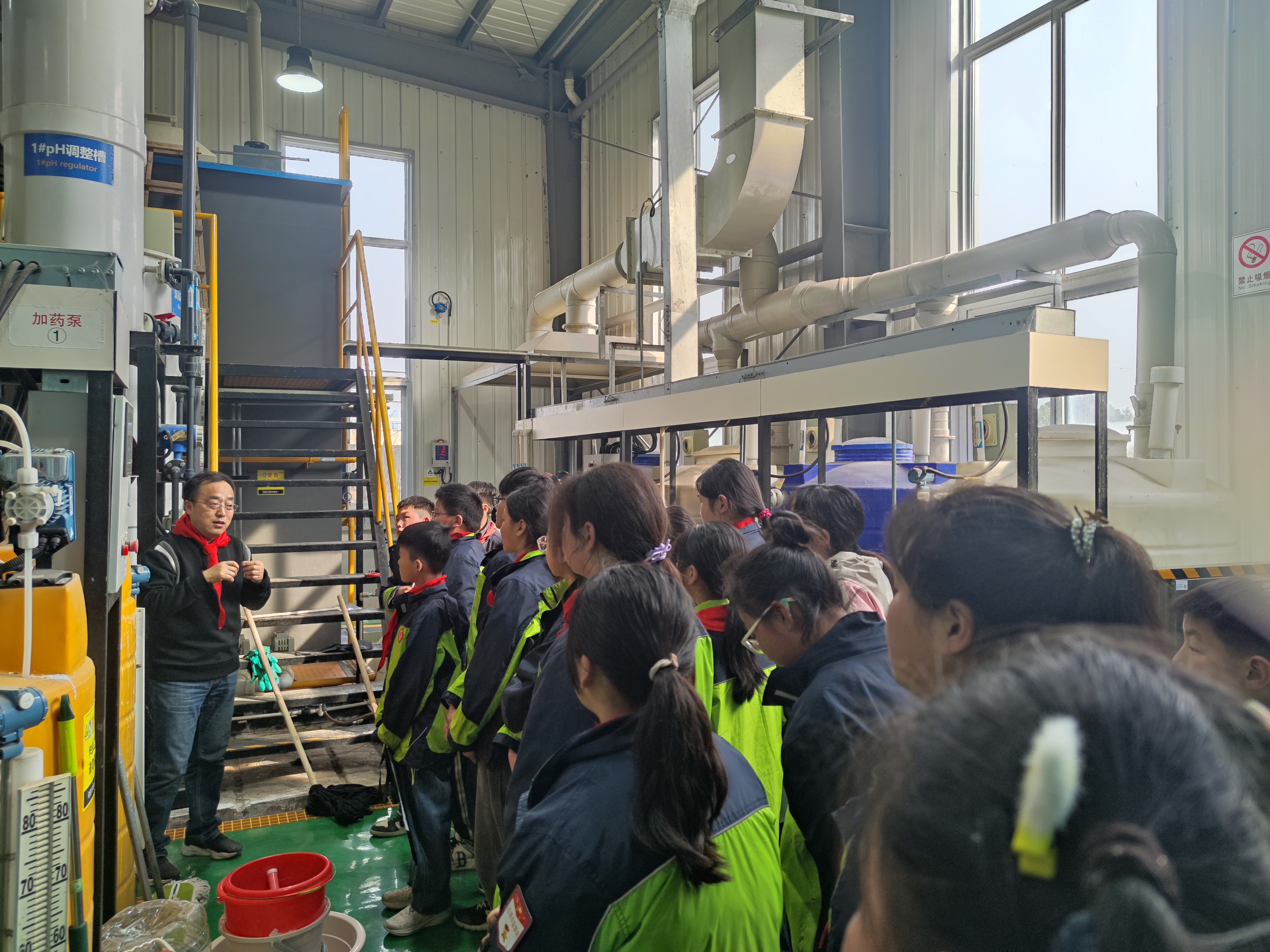 首先,环境工程系主任何士龙、实验中心副主任白向玉对各位同学的到来表示热烈欢迎,并介绍了该活动的背景、意义和要求。随后,白向玉老师围绕消防安全、交通和实验室安全四色标识、“我能为生态做什么”等内容进行讲解、互动和交流,并结合学校鹿园、天鹅湖、水污染治理与控制实训中心等实例讲解爱护动物、保护环境、人与自然和谐相处的重要性,向同学们倡导要从我做起,从小事做起,以实际行动做到尊重自然和爱护自然。最后,在白向玉老师和大队辅导员魏旖旎老师的指导下,同学们完成了“我能为生态做什么”主题活动研学单。整场活动气氛热烈,同学们踊跃发言,积极参与互动体验活动,收获了安全环保知识。活动开始前,在大队辅导员魏旖旎老师的组织下,铜山区新区实验小学为白向玉老师举行了红领巾佩戴仪式。