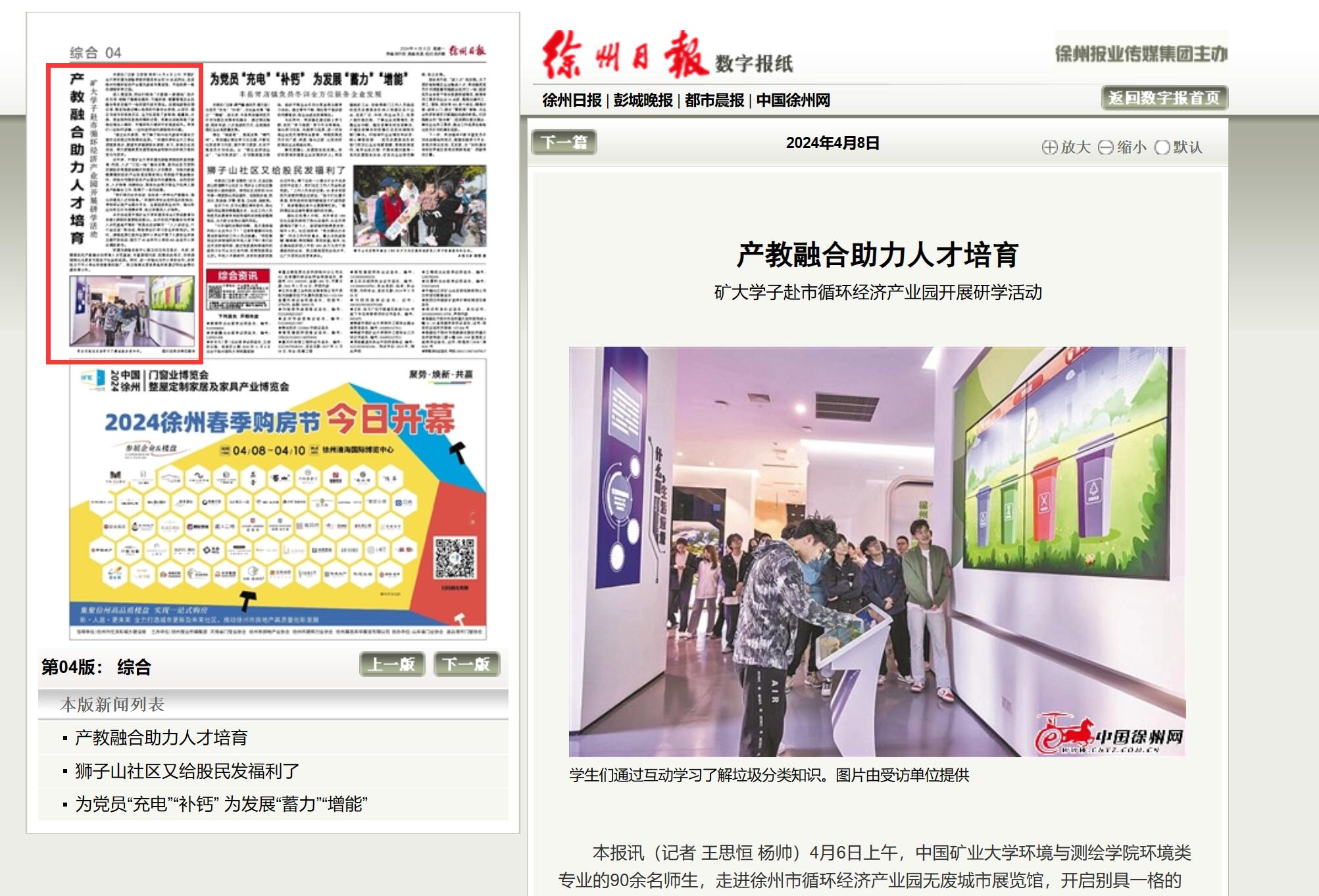 徐州日报:产教融合助力人才培育——矿大学子赴市循环经济产业园开展研学活动
